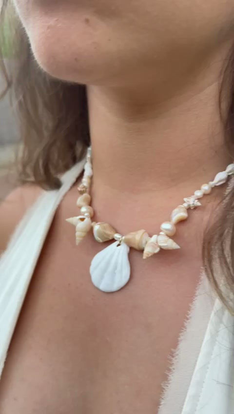 עשוי מפלדת אל חלד עם צדפים ופניני מים מתוקים